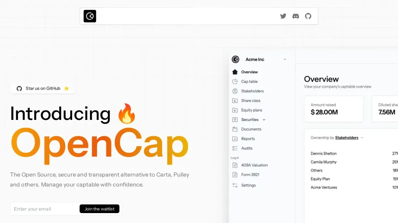 OpenCap - The Open Source alternative to Carta and Pulley.