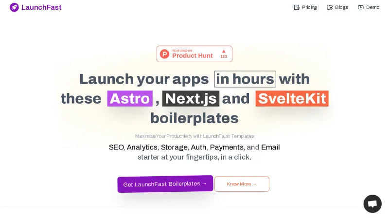 LaunchFa.st - Launch your apps in hours with these Astro, Next.js and SvelteKit boilerplates
